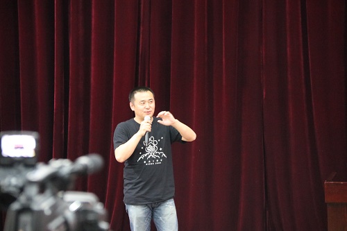 宣讲会伊始,开创集团制作精良的宣传片把“互联网+”这一概念展现给同学们,进而引出了对开创集团的介绍,引起了大家对此次宣讲会的浓厚兴趣。王鹏主任介绍了到场嘉宾,以及此次宣讲会的主讲人周伯虎先生与bw必威西汉姆联官方网站的不解之缘。在大家热烈的掌声中,周伯虎先生登台开始为大家讲述自己的创业之路。首先,周伯虎先生向大家讲述了自己在大学时的青葱岁月,他幽默而不失深意的话让大家很难相信,一个如此优秀的企业管理者,私下里竟然是平易近人的。并且,时至今日,周伯虎先生依然对当时的老师抱有感恩之情,正如王主任在会议开头所说:“周伯虎先生是一个重情重义的人。”