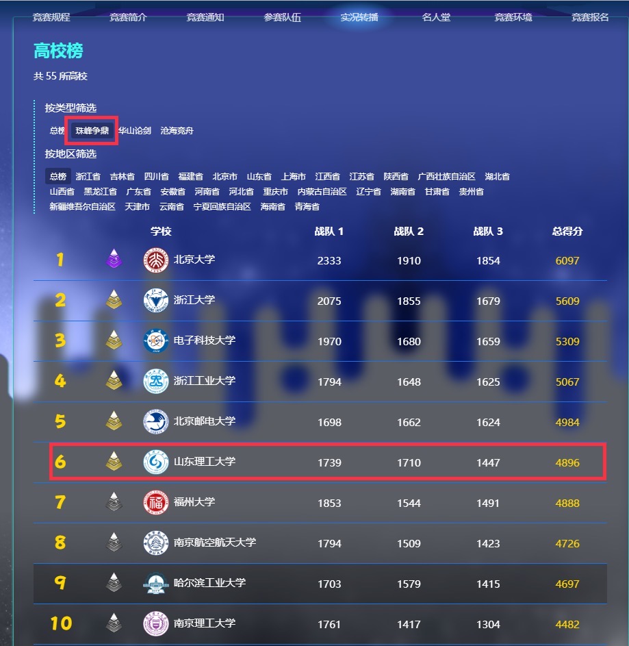 (珠峰争鼎 第6名)高校一等奖 排名榜