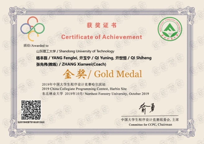 2019-10-13 CCPC第五届中国老员工程序设计竞赛(哈尔滨)金牌 奖牌
