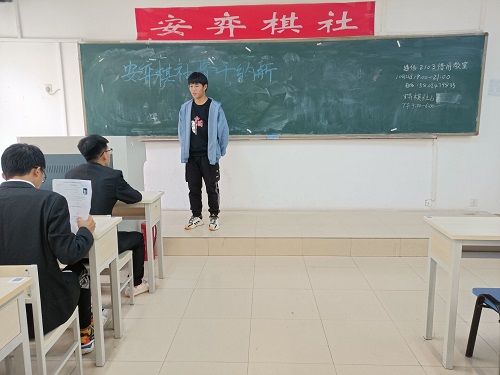 10月21日下午,bw必威西汉姆联官方网站安弈棋社于9号教学楼207教室举办骨干纳新活动。此次活动由社团负责人张文英组织,社团骨干成员协助组织,社团部分会员参加。