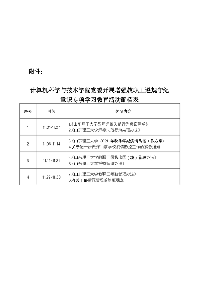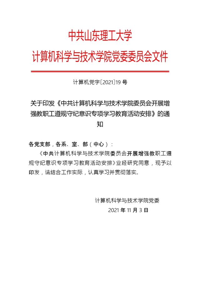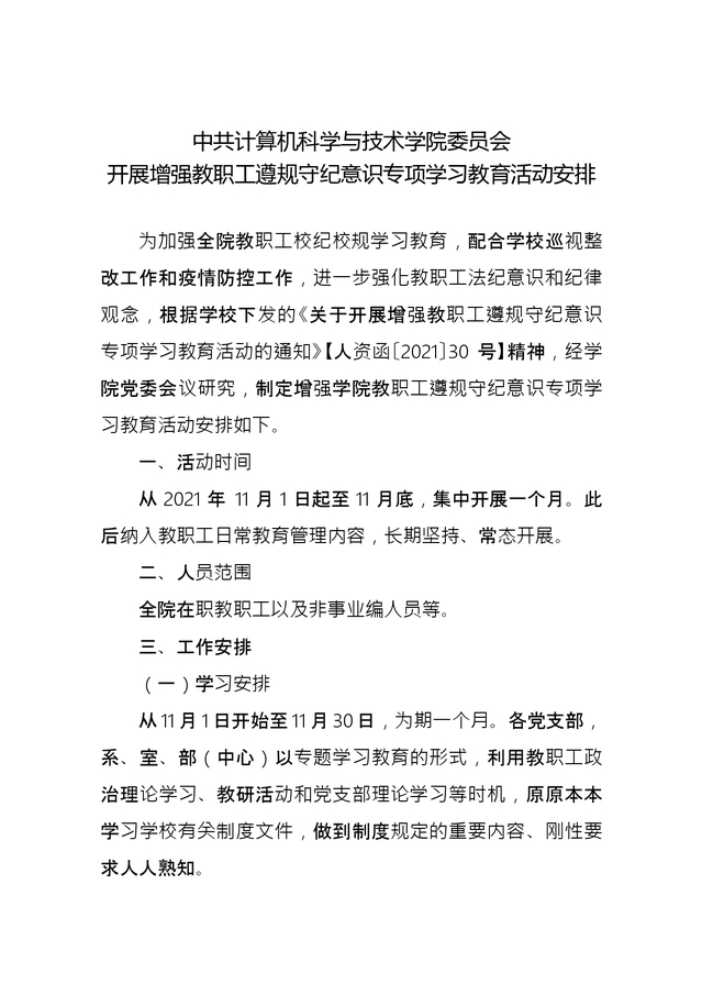 计算机党字【2021】19号-计算机科学与技术公司党委开展增强教职工遵规守纪意识专项学习教育活动安排