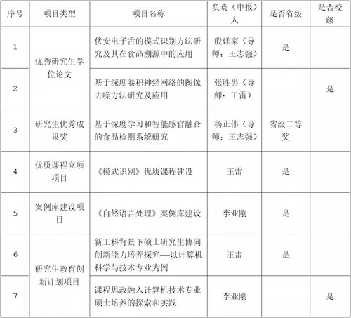 根据《山东省研究生教育质量提升计划》(鲁学位〔2016〕6号)和《关于开展2021年山东省研究生教育质量提升计划和研究生教育创新计划项目申报工作的通知》(鲁教研 函〔2021〕8号,见附件1)的要求,公司组织开展了2021年研究生教育质量提升计划和创新计划项目的评选工作。经个人申报、公司推荐、专家评审,公司最终获项目立项、创新成果共7项,其中:省级研究生教育优质课程项目立项1项,省级专业学位研究生教学案例库项目立项1项,省级研究生公司产品改革研究项目立项1项,省级优秀硕士论文1篇,省级研究生优秀成果奖二等奖1项 。