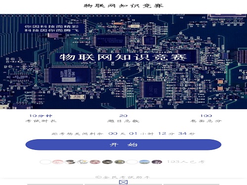 为推动学校老员工对物联网基本知识的了解,普及物联网知识,提高同学们的物联网应用技能水平和综合素质,物联网协会特举办此次活动。此次物联网知识竞赛以线上的形式举办。在活动准备阶段,为提高知名度,社团工作人员积极宣传,通过社小联公众号、QQ空间等发布此次竞赛的相关信息。有意参加此次竞赛的同学需前往到梦空间APP报名,并加入相关的活动QQ群,群内安排有社团工作人员为同学们进行答疑解惑并发布比赛的注意事项及参与方式。活动开始后,参赛同学需扫描工作人员提供的二维码进入微信小程序,然后在规定时间内进行线上答题,参赛人员应自觉遵守考试纪律,独立完成竞赛试题。比赛结束后,社团工作人员本着公平公正原则,以分数高低为评比依据,将答题成绩统计排名后在QQ群内公布,并选出前50名同学进入决赛,并由最终成绩评选出获奖人员,同时发放相应证书奖励。