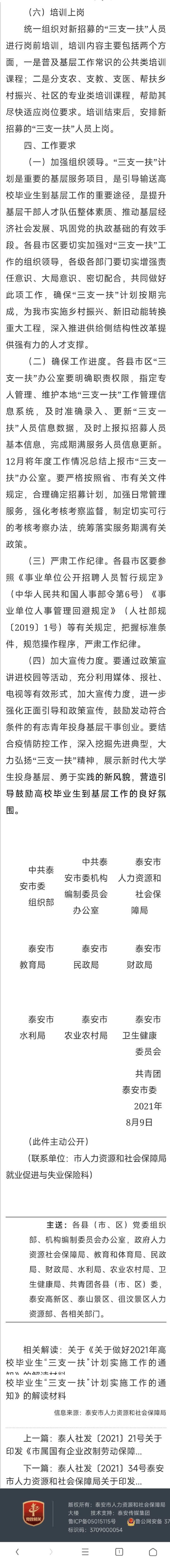 泰安市关于《做好2021年高校毕业生“三支一扶”计划实施工作的通知》的解读材料
