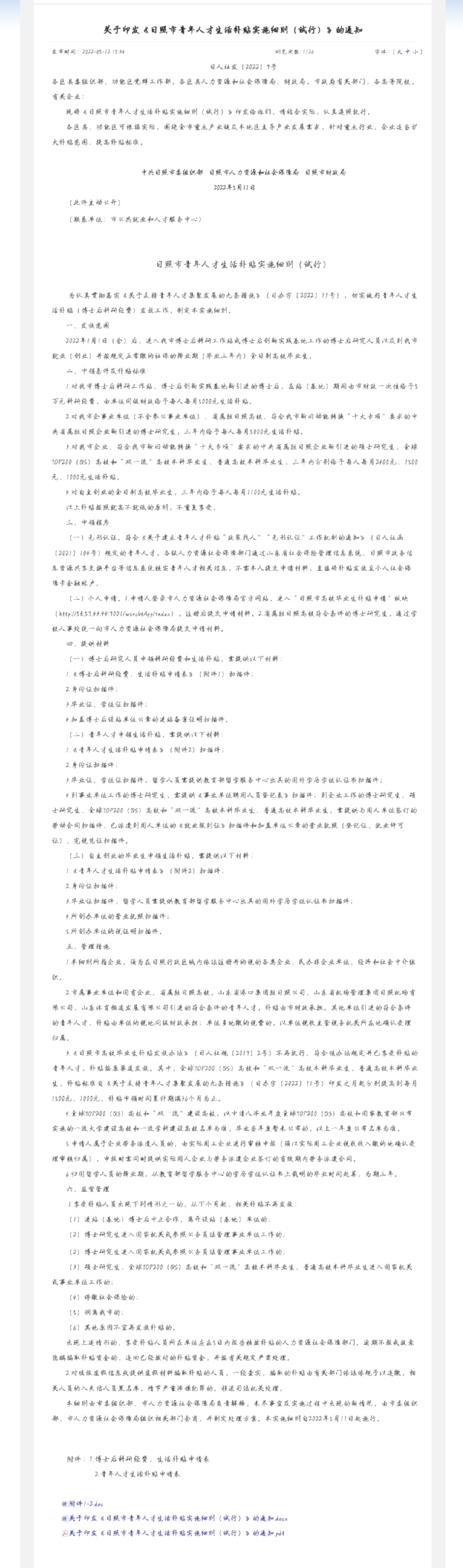 日照市人才补贴政策