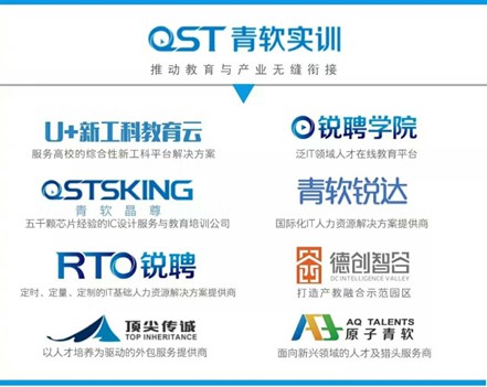 QST青软集团通过自主知识产权的产业应用解决方案大力提升政府、企业的整体信息化水平,旨在打造高端电子及软件应用领域产、学、研一体化产业链,力促传统产业的转型。QST青软集团已成功为国内外著名IT公司、跨国公司及政府部门提供了包括项目委托开发、业务咨询和信息化整体解决方案在内的先进、完善、科学的产业应用服务,并获得广泛的赞誉与好评。基于对电子信息专业教育需求及产业发展的深刻理解,QST青软集团创新地重新定义了电子信息领域教育服务模式,开辟了崭新教育服务市场,并成为其先行者与领军者。充分整合教育和产业两端的巨大需求与优势资源,不断研究和探索符合中国国情的电子信息专业人才培养项目,使产业积累成为反哺教育的坚实力量,使“实践导向型”教育及其所推动的教学改革成为当下创新性人才培养的核心主题。