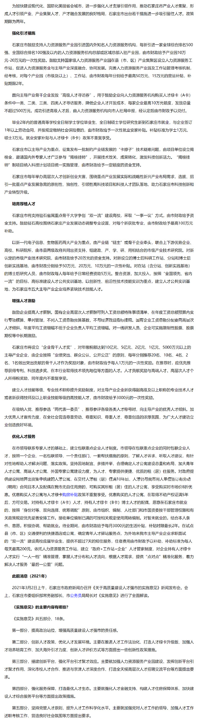 石家庄人才引进政策
