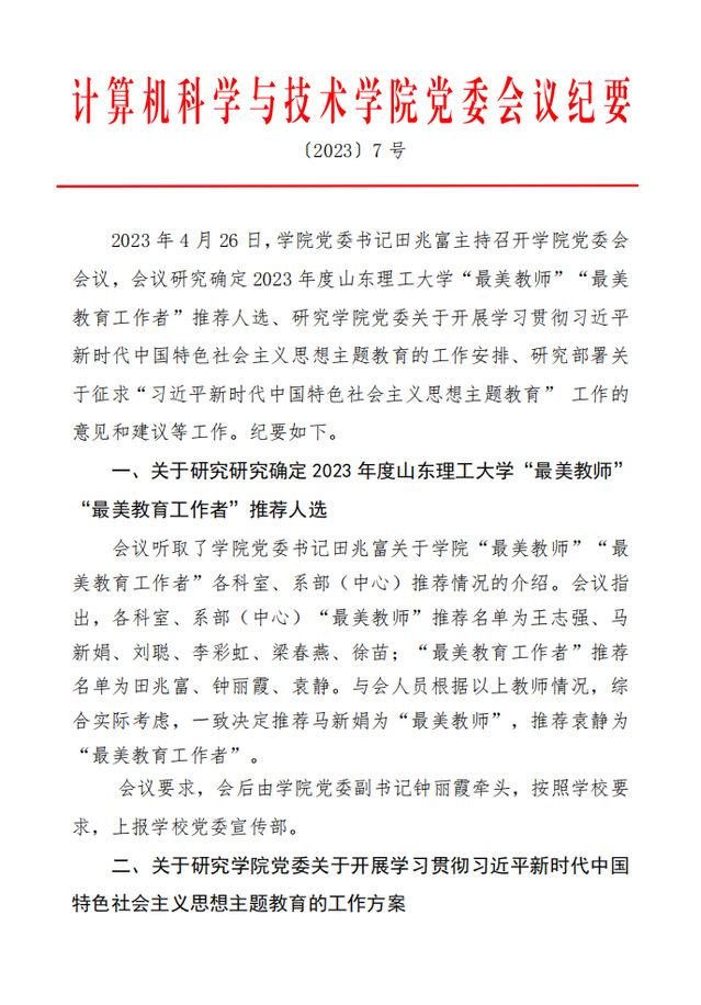 党委会议纪要 〔2023〕7号