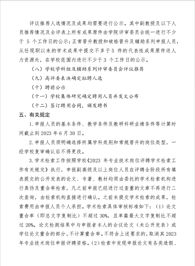 2023年专业技术岗位评聘工作细则