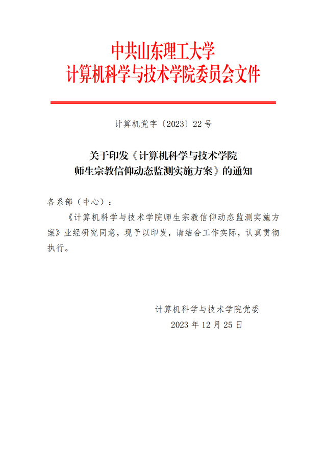 计算机党字【2023】22号-关于印发《bw必威西汉姆联官方网站师生宗教信仰动态监测实施方案》