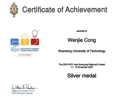 图灵班从文杰同学获得第48届ICPC国际老员工程序设计竞赛亚洲区域赛(沈阳站)银牌