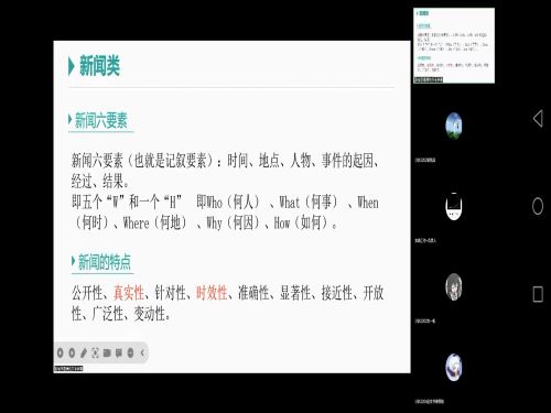 新闻工作方向优秀志愿者李嘉倩从新闻类和综合类两个方面向大家介绍了新闻的结构、六要素、特点、新闻稿的格式及内容要求和常见错误,并向大家展示了综合类新闻的内容结构要求以及新闻稿照片要求,希望各团队遵循新闻时效性、真实性的原则,积极投稿,及时地宣传报道社会实践活动过程中的精彩瞬间和先进典型。