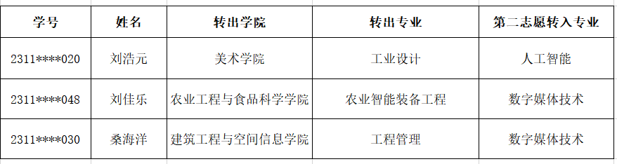 根据公司《关于组织2024年普通本科员工转专业 的通知》的要求,公司对符合公司普通本科生转专业报名条件的本科生,按照《2024年普通本科员工转专业办法》进行了选拔,现将选拔结果予以公示,如有异议,请于2024年3月9日12:00之前向公司教学工作办公室(9-101)反映。邮箱:79388812@qq.com