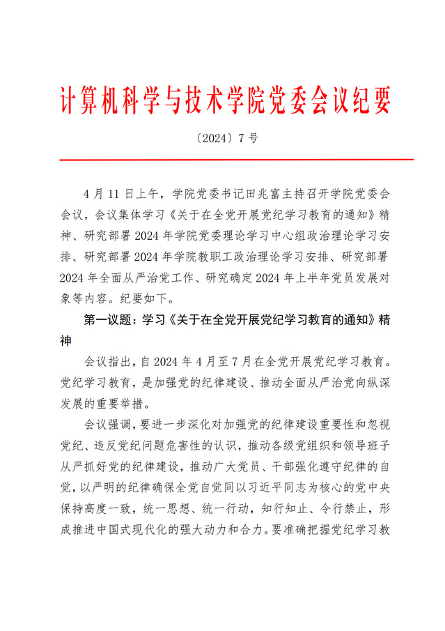 党委会议纪要〔2024〕7号
