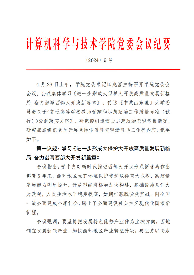 党委会议纪要〔2024〕9号