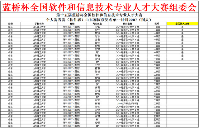 当蓝桥杯开放报名之际,图灵班的同学们踊跃报名,积极备赛,询问学姐和学长们参赛经验,接受老师的指导。第十五届蓝桥杯全国软件和信息技术专业人才大赛于4月13日成功举办。竞赛结果于4月29日正式公布。计科2307(图灵班)报名27人,获奖23人,其中省一等奖4人,省二等奖11人,省三等奖8人。计科2207(图灵班)报名34人,获奖32人,其中省一等奖11人,省二等奖14人,省三等奖7人。获得省一等奖的同学将于2024年6月1日参加全国总决赛。同学们本次竞赛成绩优异,可喜可贺。