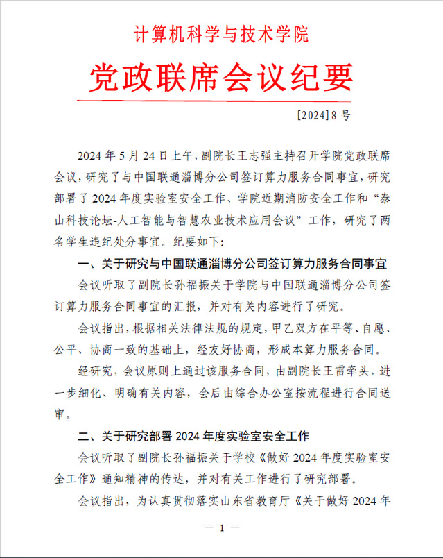 党政联席会议纪要〔2024〕8号