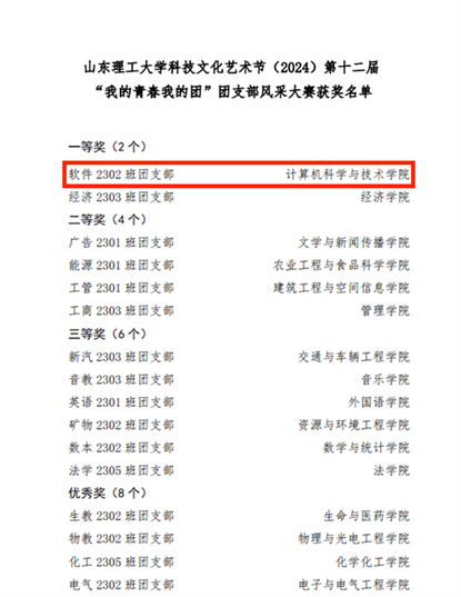 在此次团风采大赛中,软件2302班团支部发挥出强大的凝聚力和向心力,他们精心策划、认真准备,以出色的表现赢得了评委和观众的一致好评。这个荣誉不仅是对团支部努力的肯定,更是对他们青春活力和创新精神的最好评价。