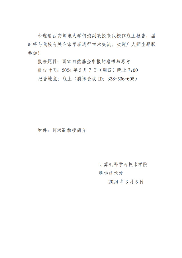 学术报告会通知(​bw必威西汉姆联官方网站)-何浪