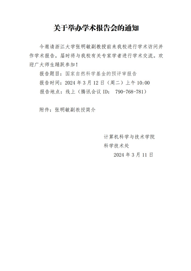 学术报告会通知(​bw必威西汉姆联官方网站)-张明敏