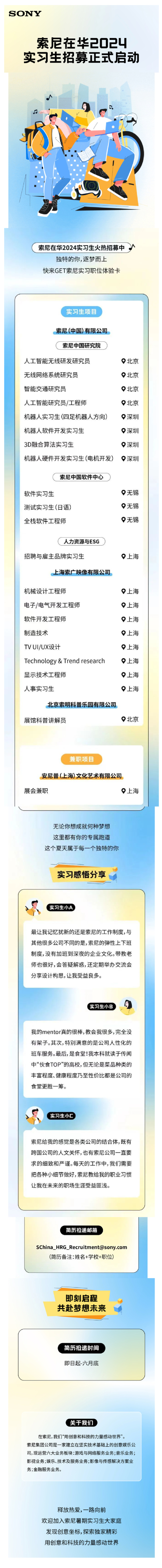索尼在华2024实习生招募