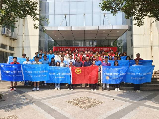 仪式上,与会领导为各实践团授旗。