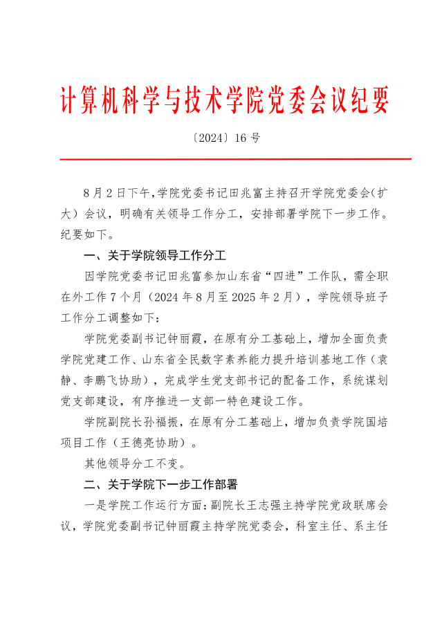 党委会议纪要 〔2024〕16号