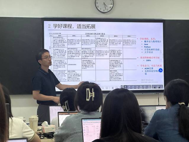 8月29日下午四点在9#309图灵班自习室,班主任王绍卿给2023级图灵班全体成员开了关于上学期图灵班学习状况的学情分析会。此次会议着重强调了图灵班智育成绩、综测成绩、竞赛成绩、大学英语四六级成绩的重要性。