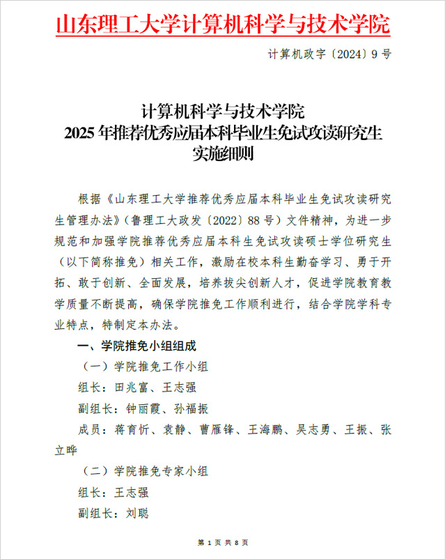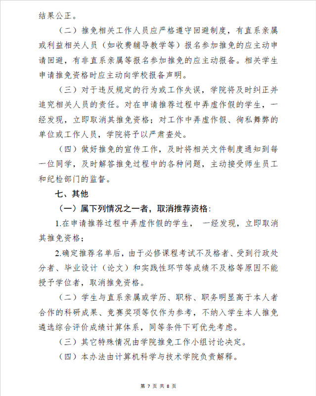 计算机政字【2024】9号-2025年推荐优秀应届本科毕业生免试攻读研究生实施细则