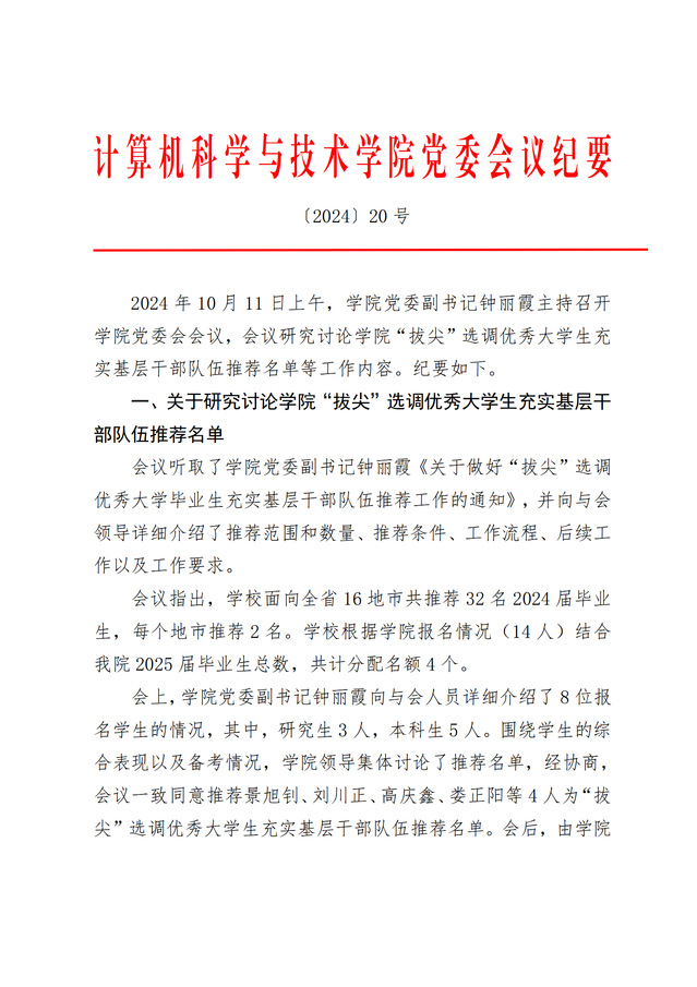 党委会议纪要 〔2024〕20号
