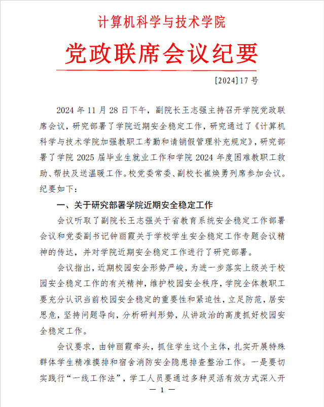 党政联席会议纪要〔2024〕17号