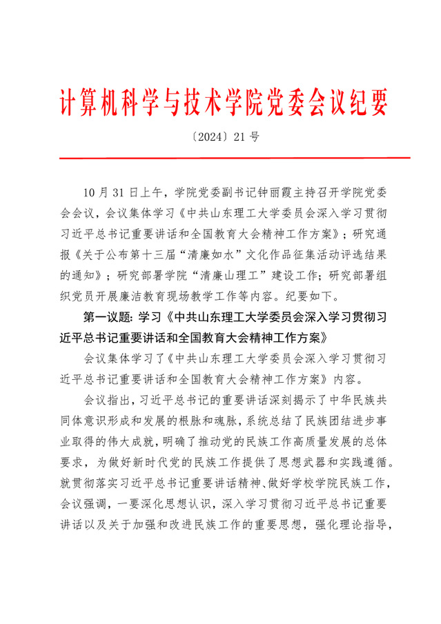 党委会议纪要 〔2024〕21号