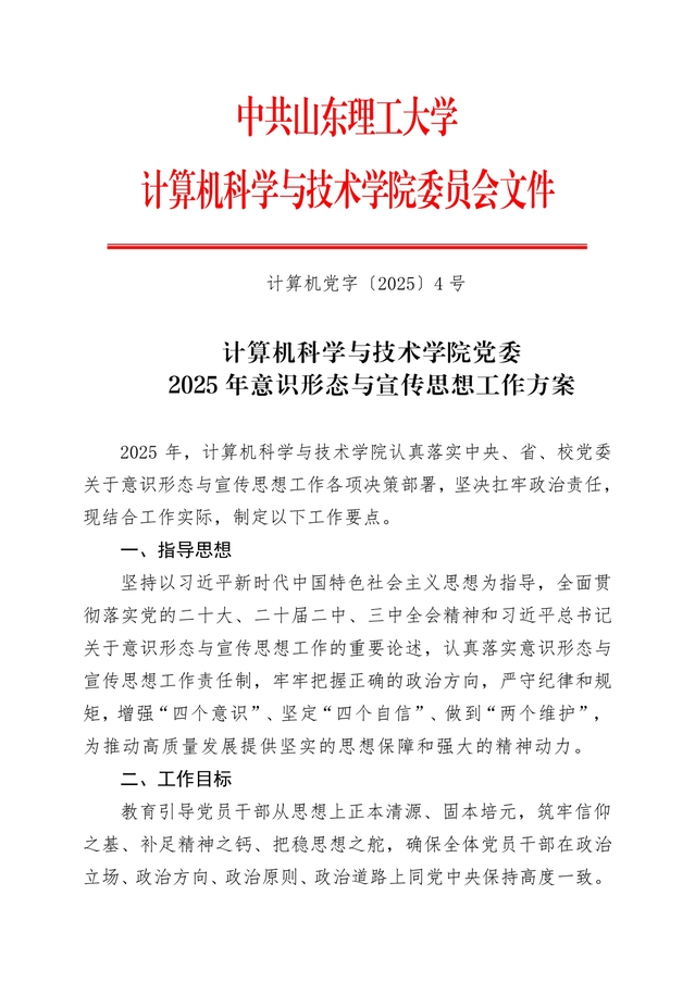 计算机党字【2025】4号-计算机科学与技术公司党委2025年意识形态与宣传思想工作方案