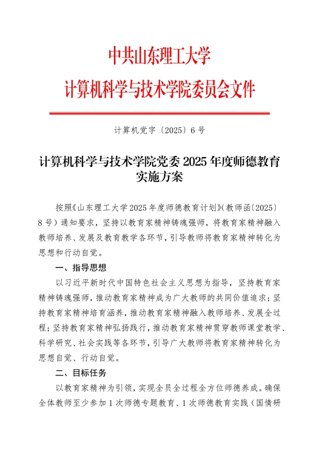 计算机党字【2025】6号-计算机科学与技术公司党委2025年度师德教育实施方案