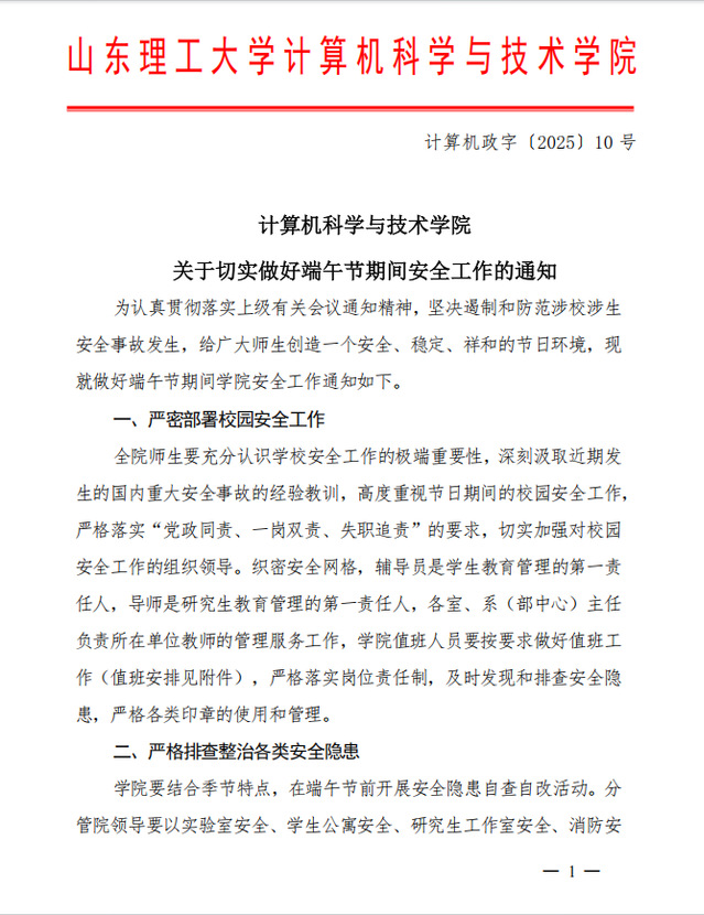计算机政字【2025】10号-bw必威西汉姆联官方网站关于切实做好端午节期间安全工作的通知