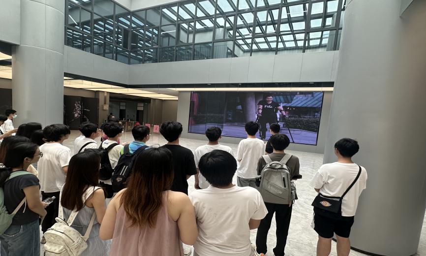 到达公司之后,傅利叶智能石经理首先带领大家来到公司门口大屏幕前方,屏幕里放映着公司的发展史以及公司的一系列产品。讲解员着重讲解了公司的主要研究方向,公司主要针对病人的康复进行机器人方向的帮助,通过高科技手段,助力病人更快的恢复行走等能力。