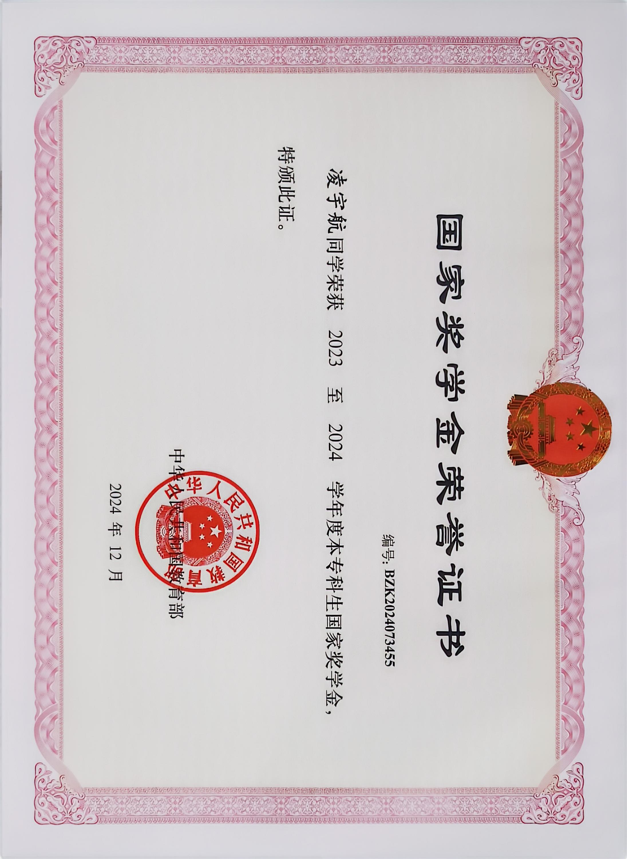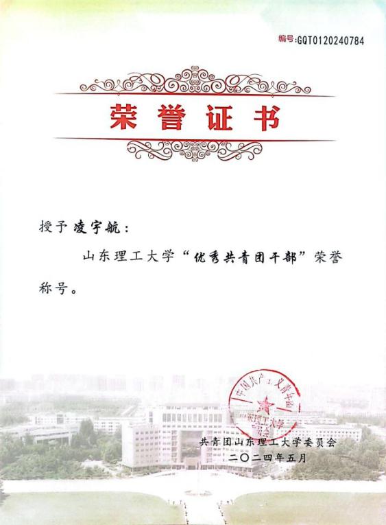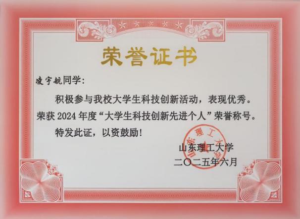 大学期间先后获得校级优秀员工、优秀员工干部、优秀共青团员、优秀共青团干部、科技创新先进个人等荣誉称号13项,获得国家奖学金、校级一等奖学金、学习成绩单项奖学金等奖学金5项。