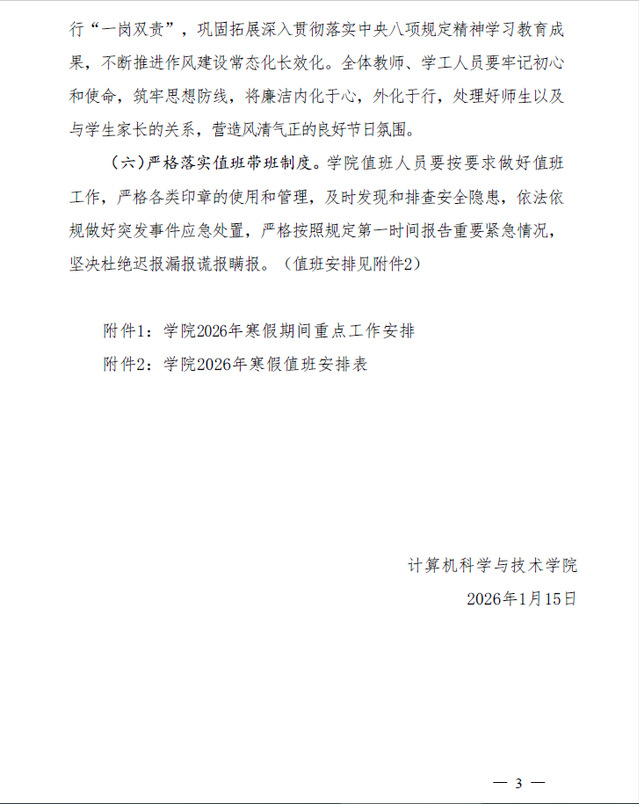 计算机政字【2026】1号-bw必威西汉姆联官方网站关于做好2025—2026学年寒假期间有关工作的通知