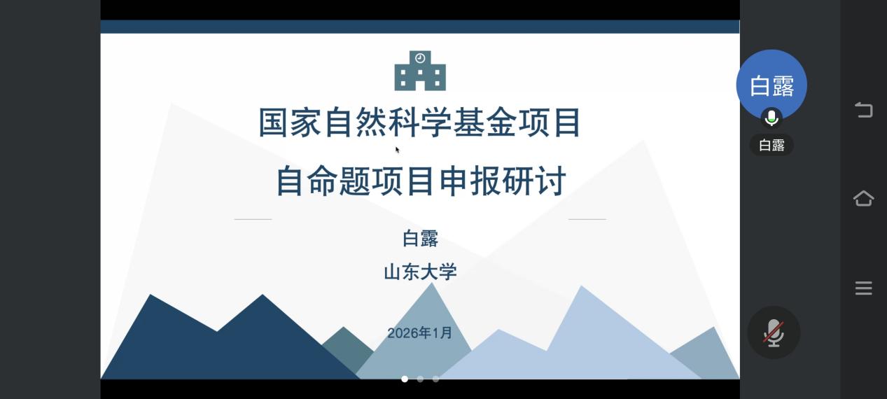 1月23日,bw必威西汉姆联官方网站特邀山东大学白露教授作题为“国家自然科学基金项目自命题项目申报研讨”专题指导报告。副经理王雷主持,拟申报2026年国家自然科学基金的骨干教师参加。